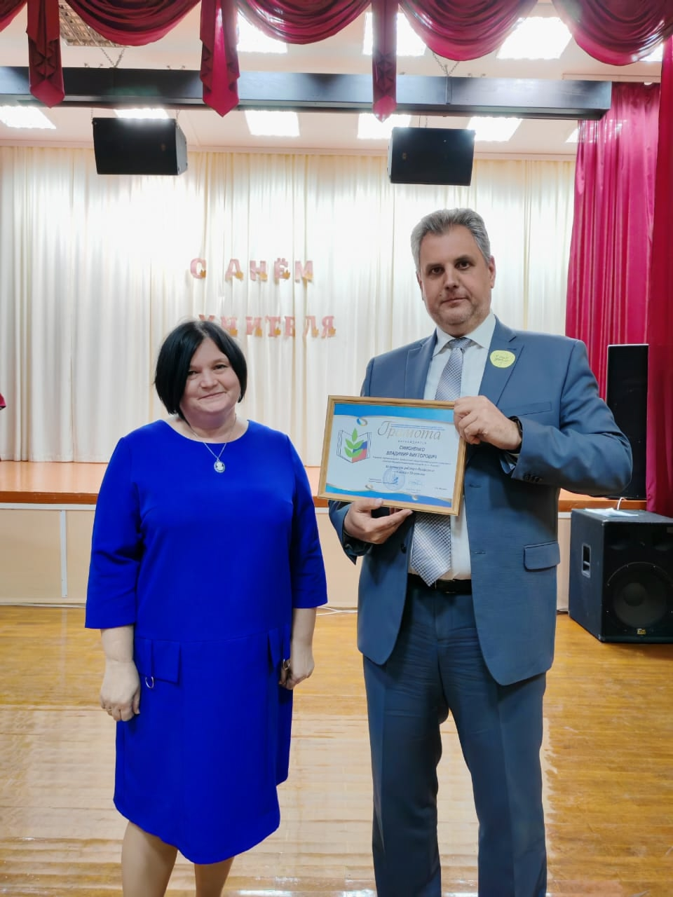 Краевая организация Общероссийского профсоюза образования наградила Грамотой за социальное партнерство директора МБОУ СОШ №22 Симаненко Владимира Викторовича. Вручение прошло в торжественной обстановке в День учителя.